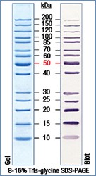 - Size range—14 proteins spanning 10 to 200kDa