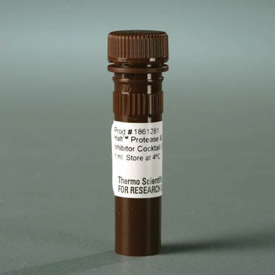 This broad-spectrum Halt Protease and Phosphatase Inhibitor Cocktail is specifically optimized to protect proteins from degradation during extraction and purification. The cocktail contains inhibitors against the major classes of proteases and phosphatases, targeting aminopeptidases, cysteine and serine proteases and serine/threonine and protein tyrosine phosphatases. To promote the inhibition of metalloproteases, 0.5M EDTA is provided in a separate tube. The 100X cocktails, available in regular and EDTA-free formulations and several package formats, are refrigerator-stable liquids that are very easy to use for nearly any sample or experimental scale.