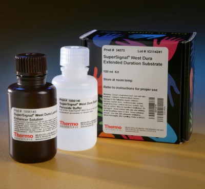 Thermo Scientific SuperSignal West Dura Extended Duration Substrate is a luminol-based enhanced chemiluminescence (ECL) HRP substrate with stable light output for mid-femtogram-level detection with CCD-based imagers.